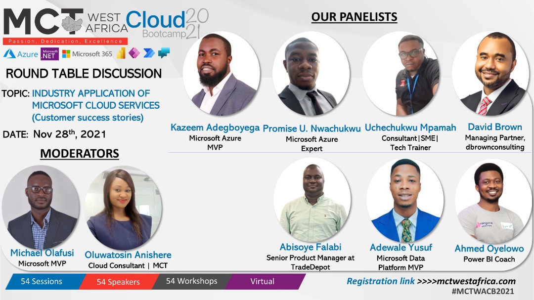 The MCT West Africa Cloud Bootcamp is a yearly technology conference aimed at bringing together various tech user groups, professionals, expects across West Africa to educate, share and network around emerging technologies that are transforming the way we operate in our local communities.